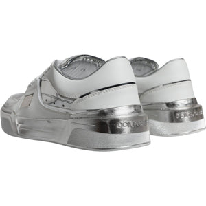 Dolce & Gabbana White Silver Leather Low Top Sneakers Shoes