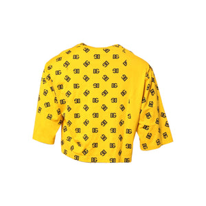 Dolce & Gabbana Yellow Cotton DG Logo Print Cropped T-shirt