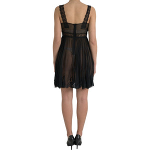 Dolce & Gabbana Black Silk Pleated Lace Chiffon Mini Dress
