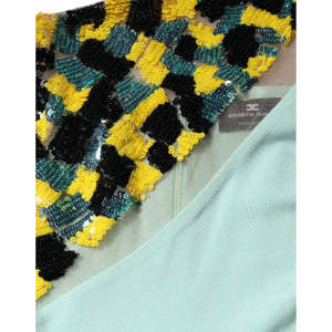 Elisabetta Franchi Mint Green One Shoulder Long Jumpsuit Dress