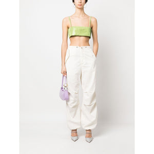 rhinestone-embellished silk crop top from Nuè featuring sage green, silk, rhinestone embellishment, square neck, thin straps, square open back, cropped and straight hem. Crystal detail cropped top Size and Fit - This piece fits true to size. We recommend you get your regular size. Model is 1,75m / 5ft 8in wearing size S