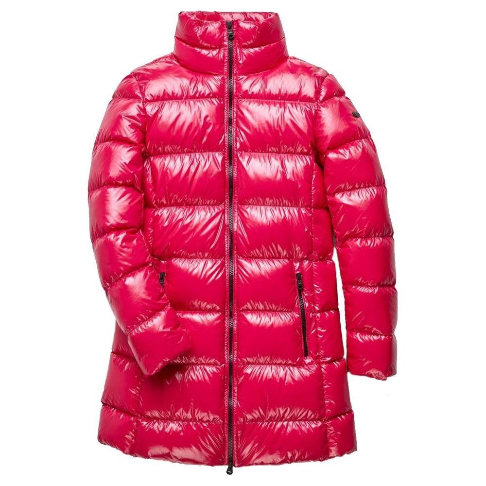 Stand out in style this season with the Refrigiwear Long Down Jacket, radiating elegance in a shiny fuchsia shade. This jacket not only boasts a zip closure and two-pocket design for functionality but also features the iconic brand logo on the shoulder, making it a stylish statement piece. Crafted with real down padding, it ensures warmth and comfort during the cooler months.