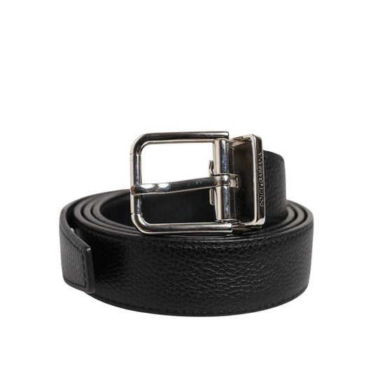 Dolce & Gabbana Black Classic Leather Silver Tone Buckle Belt