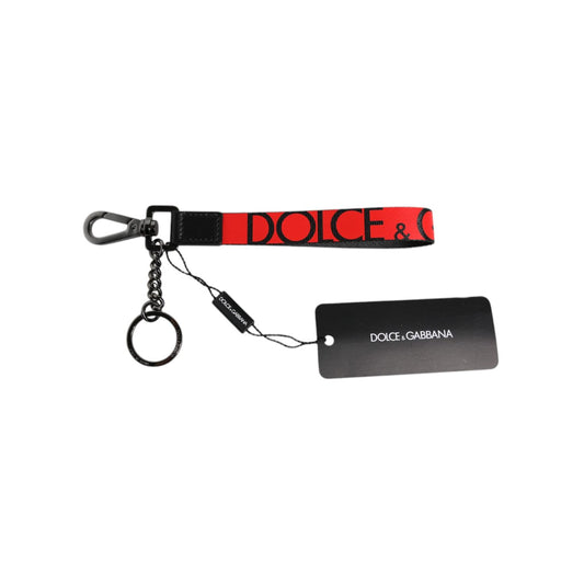 Dolce & Gabbana Red Logo Polyester Silver Brass Holder Keychain Men Keyring