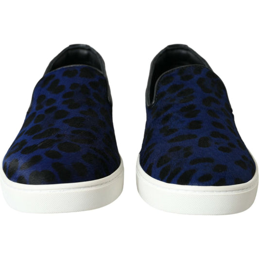 Dolce & Gabbana Black White Calf Fur Slip On Loafers Men Shoes