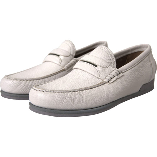 Dolce & Gabbana White Leather Slip On Mocassin Loafers Shoes