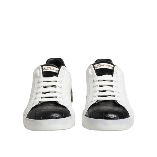 Dolce & Gabbana White Black Leather Portofino Sneaker Shoes