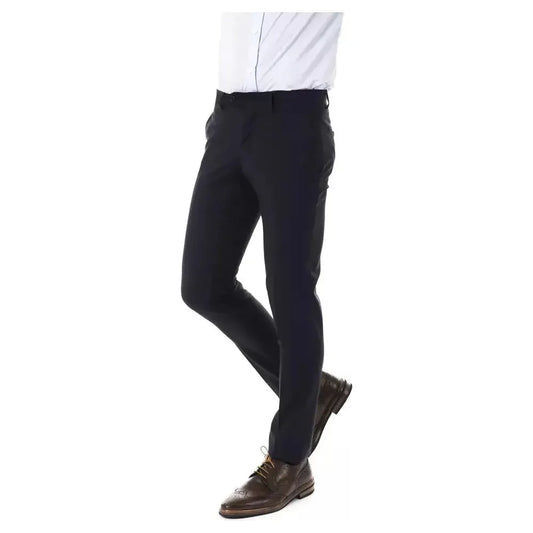 蓝色丝绸混纺优雅修身斜纹棉布裤