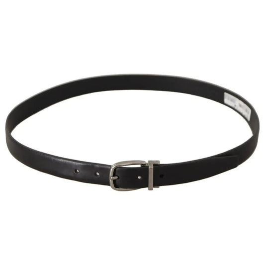 Dolce & Gabbana Black Leather Silver Metal Buckle Belt