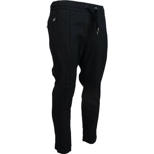 光滑黑色羊毛混纺运动裤