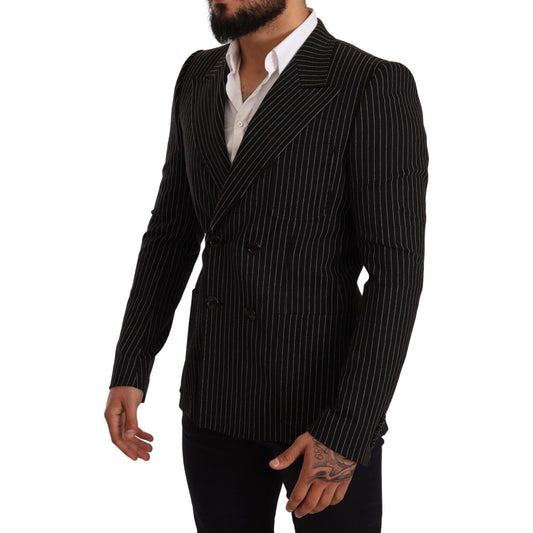 优雅条纹羊毛西装外套,配丝绸衬里