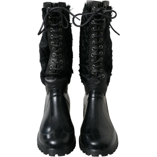 优雅黑色小牛皮系带靴