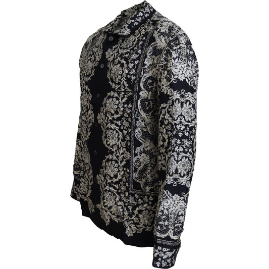 带皇冠刺绣的优雅黑色修身正装衬衫