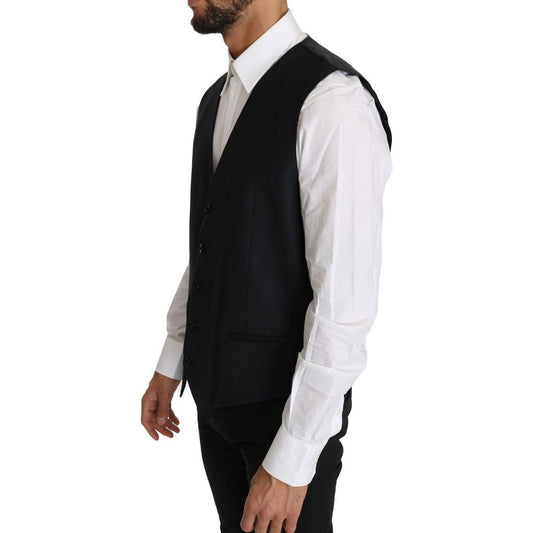 优雅黑色丝绸混纺正装背心