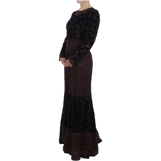 优雅黑色花朵蕾丝长裙