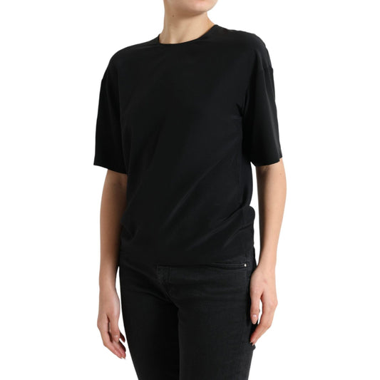 优雅真丝混纺圆领衬衫