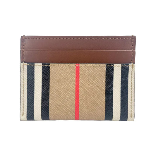 Sandon Tan 帆布格纹印花皮革超薄卡片夹钱包