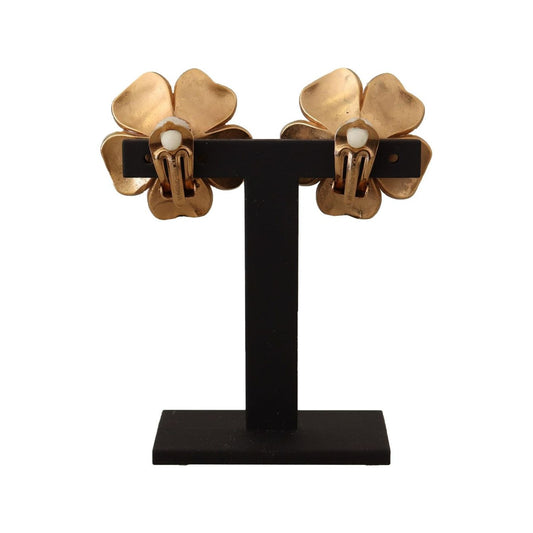 优雅花朵水晶珍珠夹式耳环