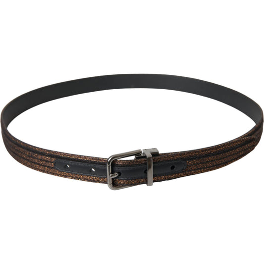 Dolce & Gabbana Metallic Bronze Leather Square Metal Buckle Belt