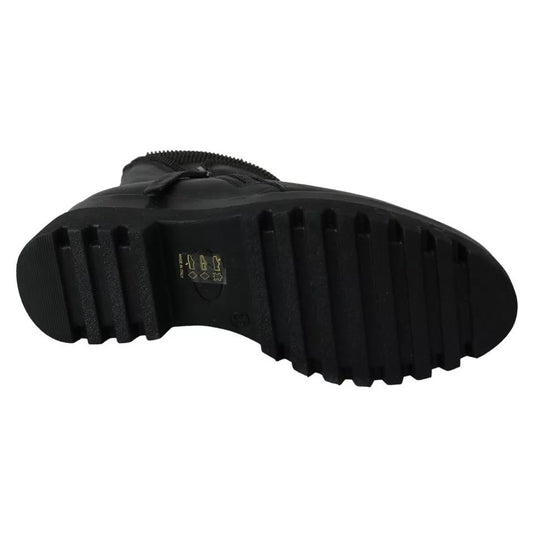 Dolce & Gabbana Black Tulle Stretch Heels Mid Calf Boots Shoes
