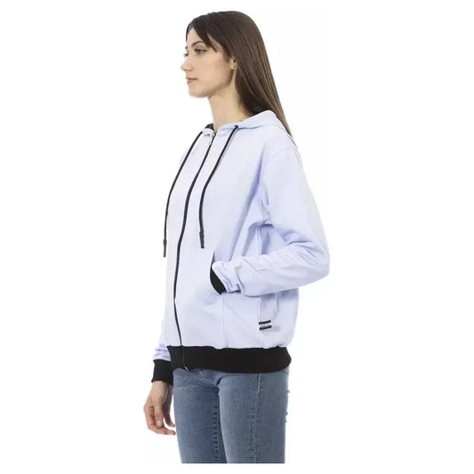 优雅的浅蓝色 T 恤,正面印有别致图案
