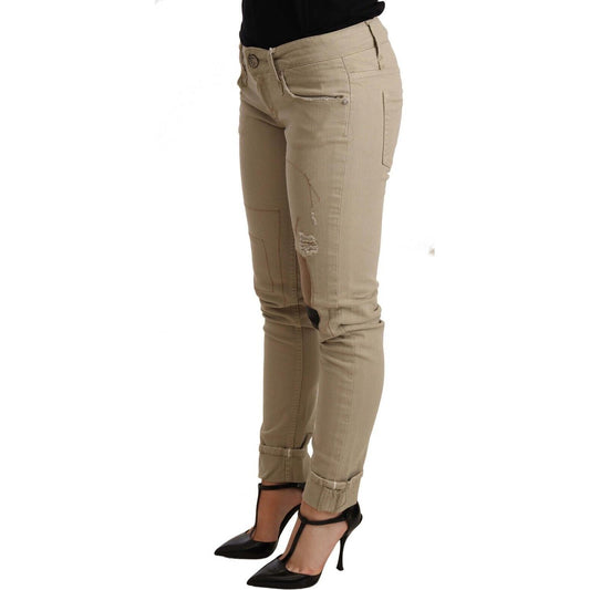 米色棉质修身时尚牛仔裤
