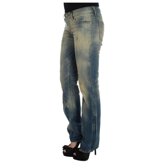 优雅修身喇叭形蓝色牛仔裤