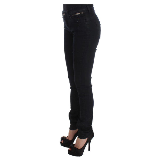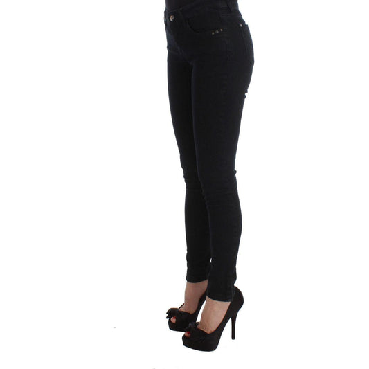 时尚黑色低腰紧身牛仔裤