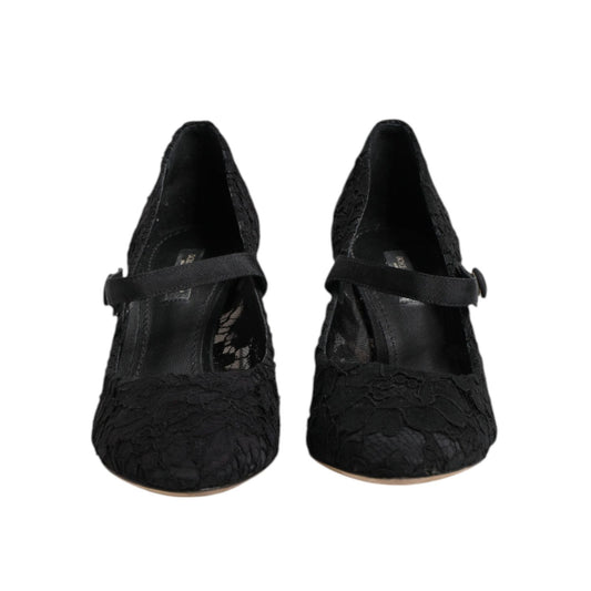 Dolce & Gabbana Black Mary Jane Taormina Lace Pumps Shoes