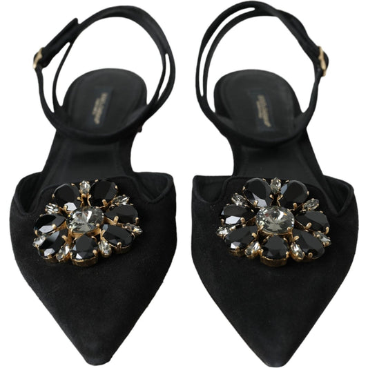 Dolce & Gabbana Black Leather Crystal Slingback Sandals Shoes
