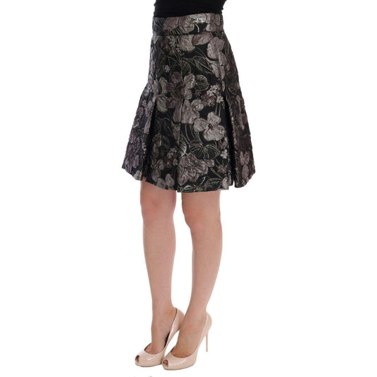 优雅黑色花卉提花 A 字裙