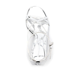 silver-tone calf leather patent finish multi-way strap design cut-out detailing round open toe buckle-fastening ankle strap branded footbed 95mm sculpted heel Armadillo heel sandals Size and Fit - Heel 3,7 in / 9,5 cm