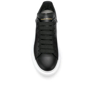 Black leather Oversized low-top sneakers from Alexander McQueen featuring branded heel counter, logo-print tongue, round toe, front lace-up fastening and flat rubber sole. Oversized leather sneakers Size and Fit - Heel 1,8 in / 4,5 cm; Platform 1,4 in / 3,5 cm