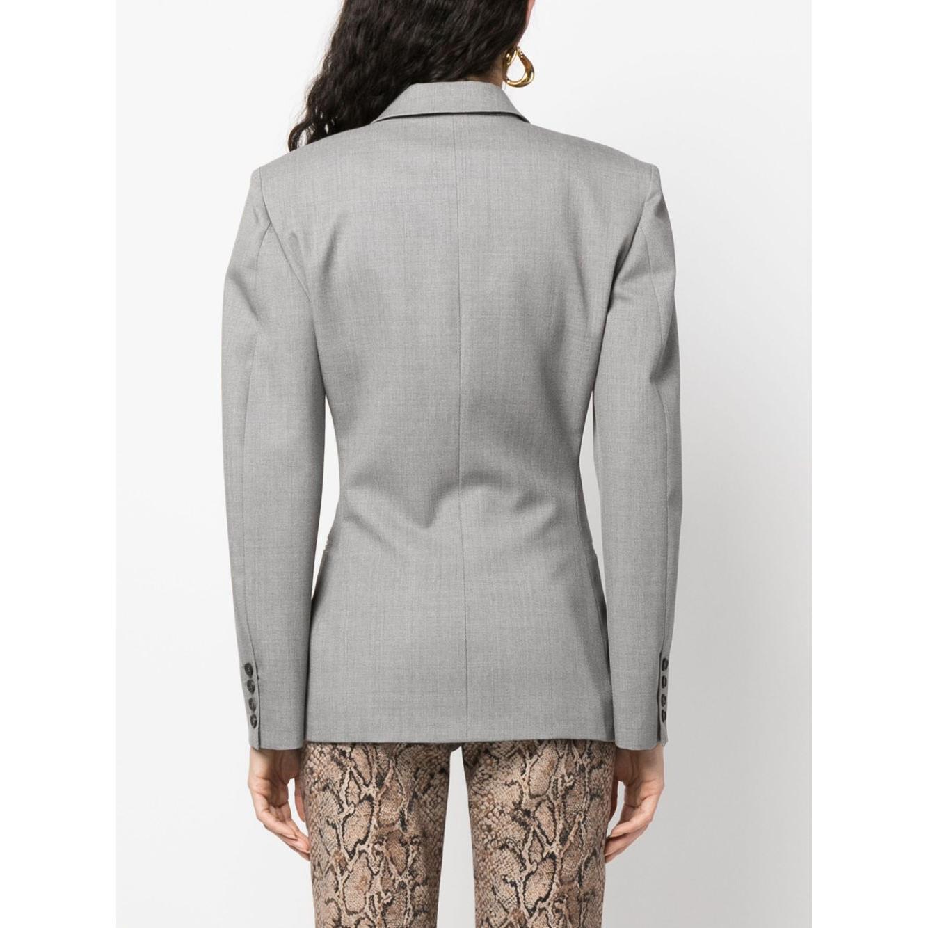 notched lapels double-breasted blazer from ARMARIUM featuring light grey, virgin wool, notched lapels, double-breasted button fastening, chest welt pocket, two front jetted pockets, long sleeves, buttoned cuffs and straight hem. Double-breasted wool jacket Size and Fit - This piece fits true to size. We recommend you get your regular size. Model is 1,75m / 5ft 8in wearing size 40 (IT)