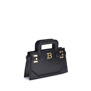 Balmain’s B-Buzz small Handbag features two top handles and a removable chain strap, adding to its versatility. The metal "B" logo, the brand’s distinctive symbol, stands out on the front. Side buckles adjust the width and closure of the panels, lending a personalized touch to the design. Inside, a single compartment with card pocket offers practicality and order. A stylish and functional accessory, perfect for any occasion.