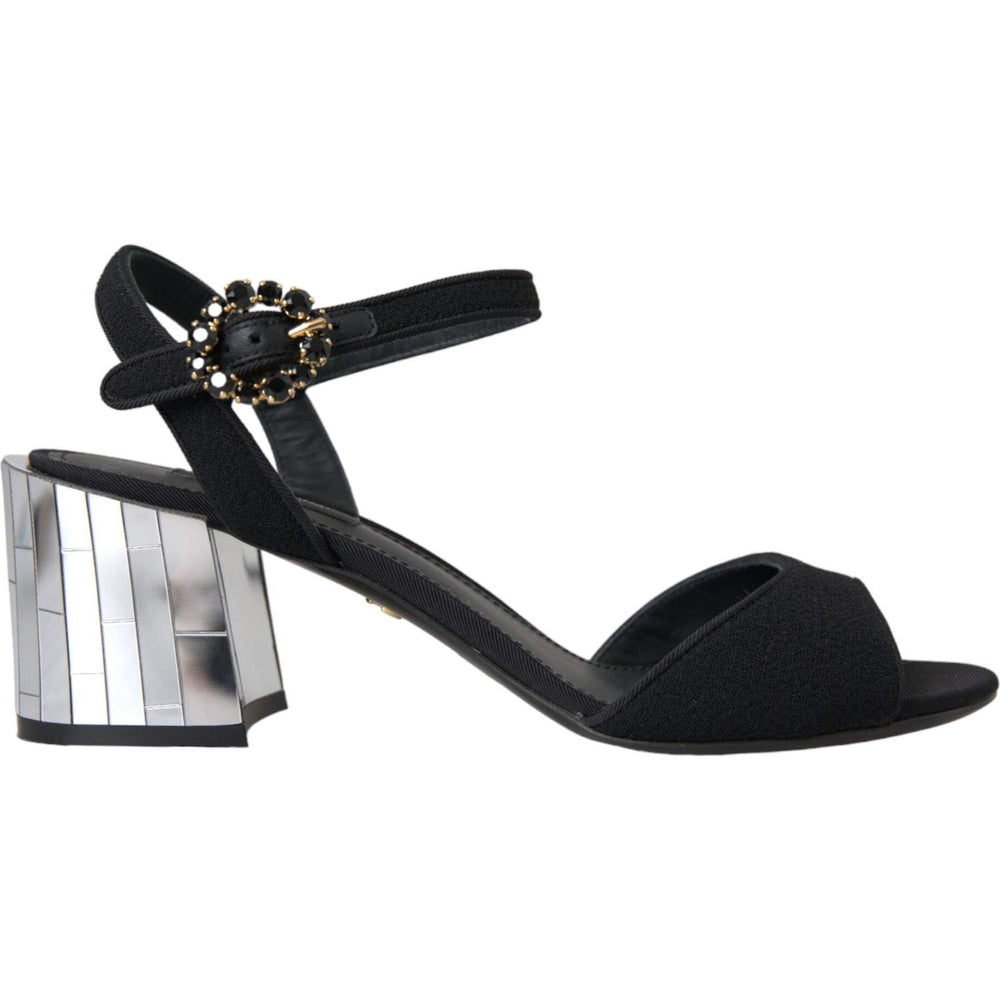 Dolce & Gabbana Black Crystal Ankle Strap Keira Sandal Shoes