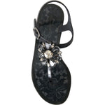Dolce & Gabbana Black Crystal Flats Sandals Flip Flops Shoes