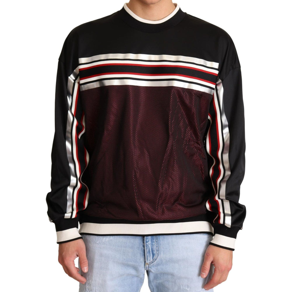 这款精美的 Dolce & Gabbana 套头毛衣让您尽享意大利奢华的典范。这款服装采用大胆的黑色调设计,点缀白色和红色,彰显精致风格。精细的材质混合既舒适又耐用,确保这款服装始终是您衣柜中的必备单品。