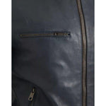 Dolce & Gabbana Blue Leather Full Zip Biker Blouson Jacket