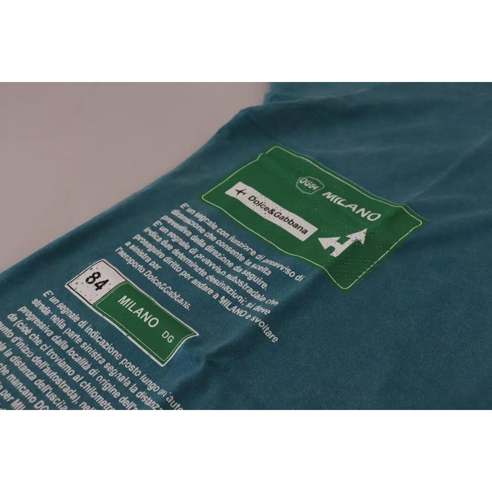 Dolce & Gabbana Blue Logo Print Crewneck Tee Cotton T-shirt