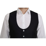 这款精美的 Dolce & Gabbana 蓝色真丝混纺正装背心是奢华剪裁的典范。这款背心非常适合提升您的正装,拥有精致的美感,配有全纽扣闭合和精致的徽标细节,全部在意大利精心制作而成。