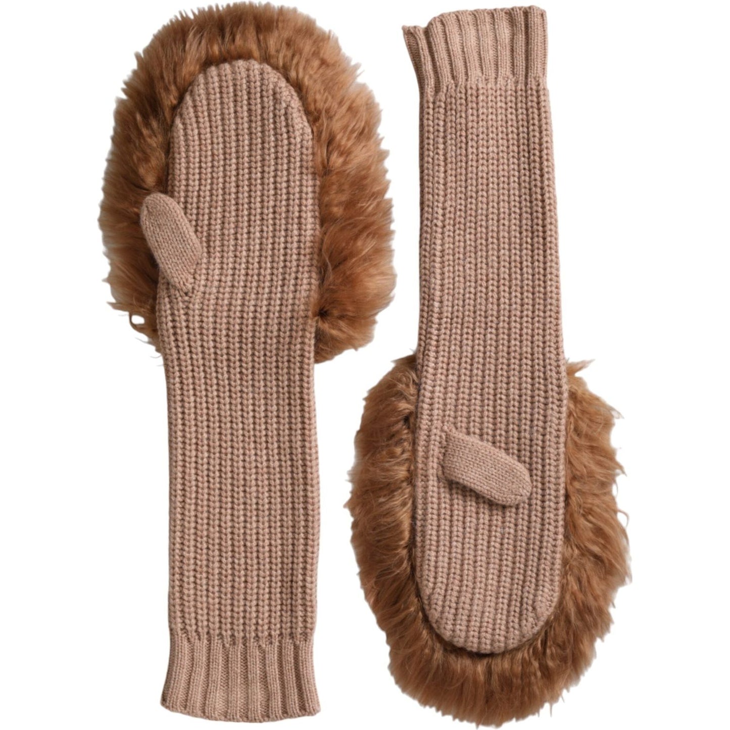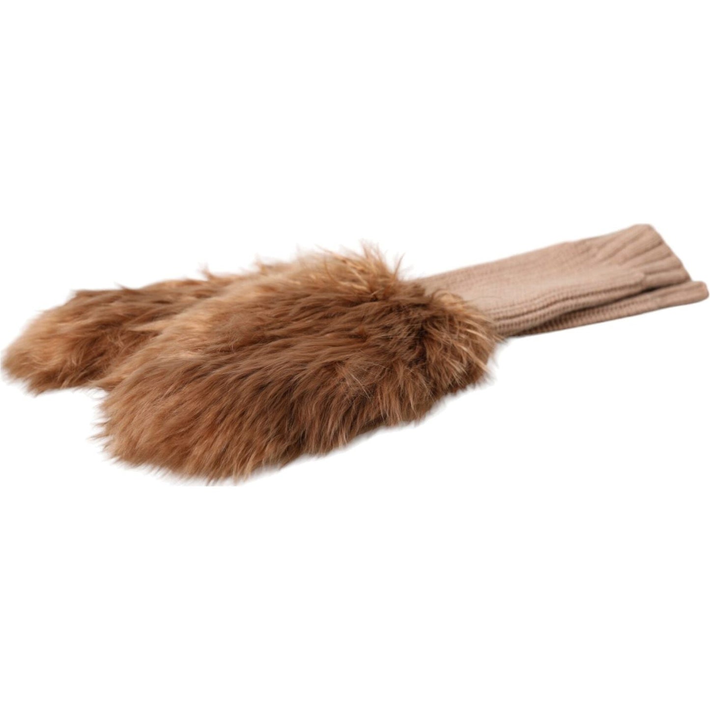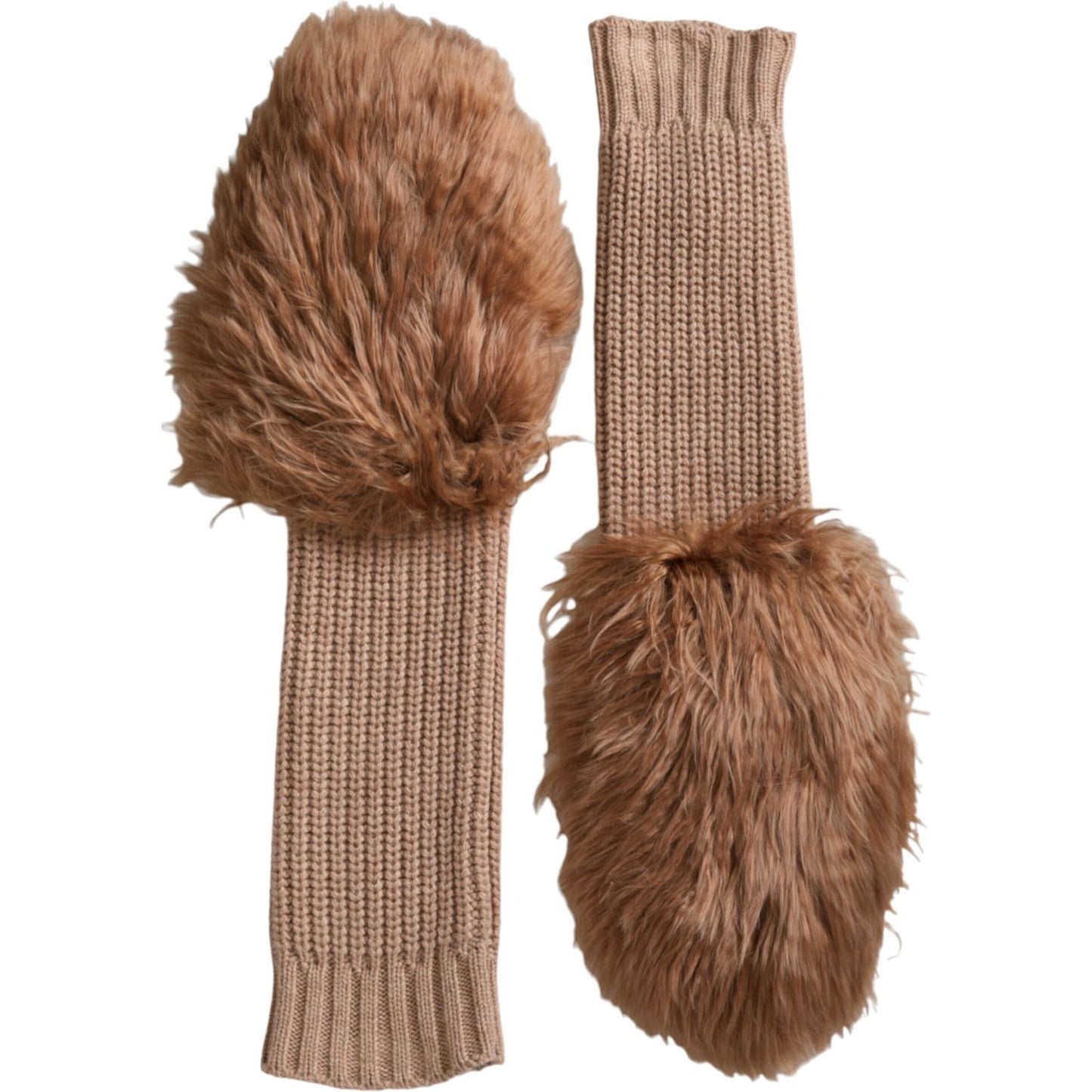 Dolce & Gabbana Brown Cashmere Knitted Fur Mid Arm Mitten Gloves