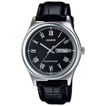 CASIO COLLECTION Mod. DAY DATE. ROMAN INDEXES. LEATHER - BLACK