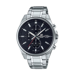 CASIO EDIFICE Mod. SPORT - CHRONO DATE BLACK wristwatch with stainless steel strap, 10 ATM water resistance, quartz movement, and chronograph.