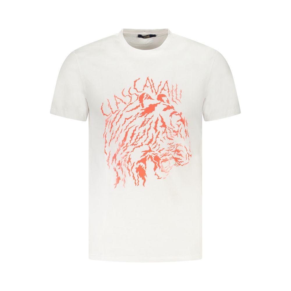 Elevate your everyday style with Cavalli Class’s latest creation that perfectly encapsulates casual elegance. This white short-sleeve T-shirt, adorned with a distinctive print and the iconic Cavalli Class logo, promises to craft a bold statement. Combining timeless design with luxurious comfort, it’s an essential piece for the fashion-conscious individual craving to make a trendy impact.