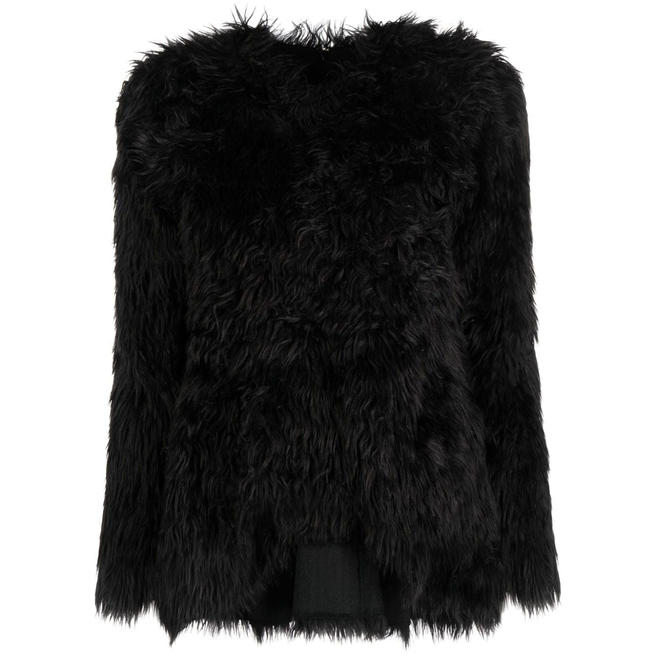 faux-fur long-sleeved top from COMME DES GARÇONS featuring black, faux-fur design, tonal design, round neck, long sleeves and high-low hem. Faux-fur t-shirt Size and Fit - This piece fits true to size. We recommend you get your regular size. Model is 1,75m / 5ft 8in wearing size S
