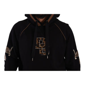 Dolce & Gabbana Black Brown Leopard Cotton Hooded Pullover Sweater