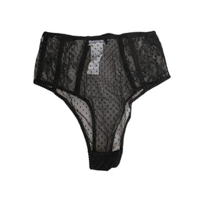 Dolce & Gabbana Black Lace Polka Dot Mesh High Waist Underwear