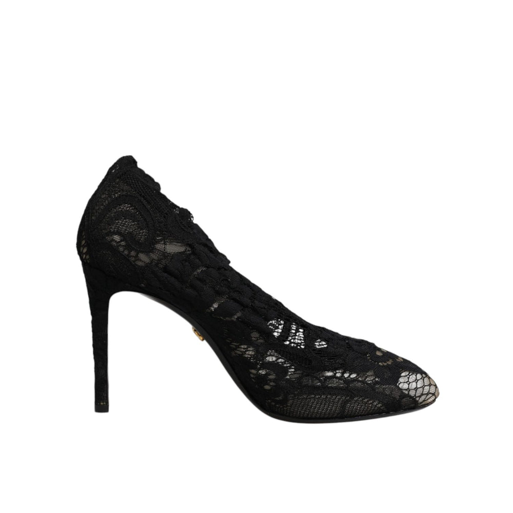 Dolce & Gabbana Black Lace Stretch Heels Mid Calf Boots Shoes