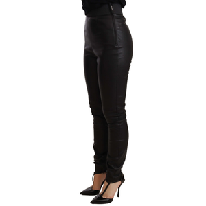 Dolce & Gabbana Black Leather Elastic Waist Trouser Pants